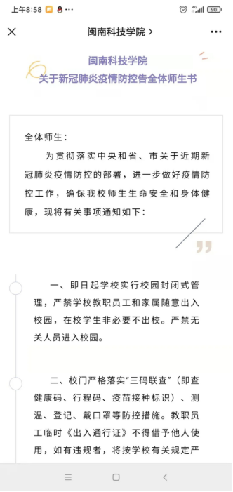 学校向全体师生发布《乐鱼(中国)官方关于新冠肺炎疫情防控告全体师生书》
