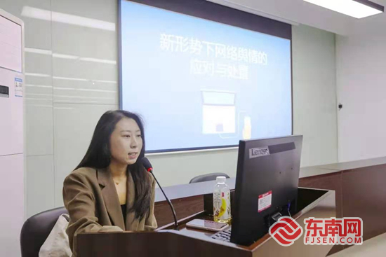 东南网12月2日讯(本网记者 谢玉妹 通讯员 叶森岚)2日下午,乐鱼(中国)官方举办网络舆情培训会,东南网新闻(舆情)中心舆情分析师王楠应邀作《新形势下网络舆情的应对与处置》专题培训。