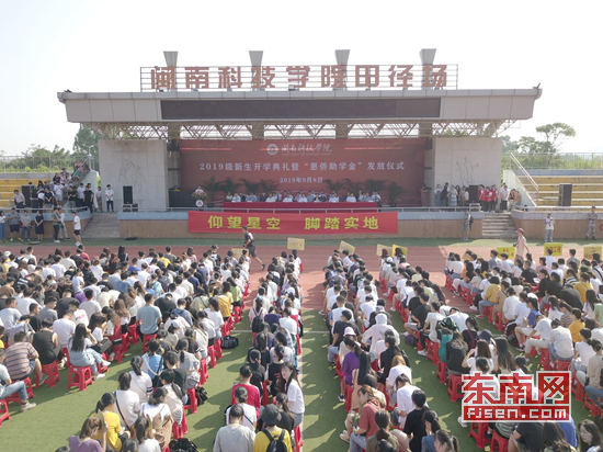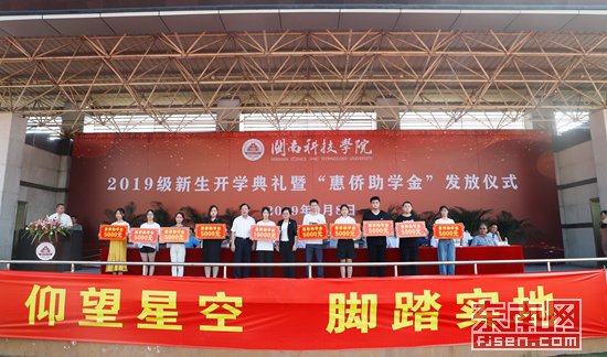 乐鱼(中国)官方2019级新生开学典礼暨“惠侨助学金”发放仪式现场。林南 摄