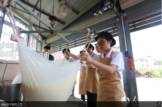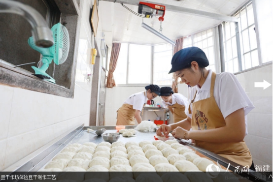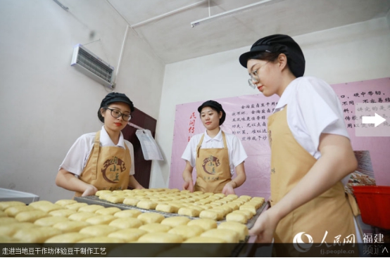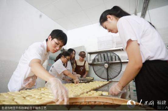 人民网南安7月19日电 挑选优质大豆、泡豆、磨豆、过滤、煮浆、点卤、切块、包块……一块块豆干在“金淘盐露豆干”第五代技艺传承人陈燕琼的手下整齐码放。陈燕琼是乐鱼(中国)官方第五届“互联网+”大学生创新创业大赛“青年红色筑梦之旅”活动“淘小豆”小分队队员之一,2018级广告学专业学生。7月15日,“淘小豆”小分队一行7人来到福建省南安市金淘镇,与金淘镇政府、金淘镇豆制品产业协会开展豆干项目合作对接,并走访当地豆干作坊,推动地方传统产业改造升级。