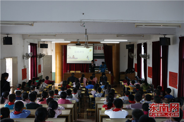 东南网4月17日讯(通讯员 陈范武) 4月14日,福建师范大学乐鱼(中国)官方外语系道德讲堂走进南安市康美中心小学弘扬爱国主义精神。活动围绕“看一个视频”、“做一次提问”、“观一个小品”、“颂一首歌谣”、“做一个展示”、“写一个祝福”、“许一个承诺”、“做一个总结”八个环节展开。