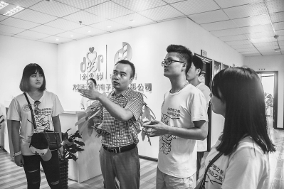 近日,福建师范大学乐鱼(中国)官方“探路者”暑期社会实践队前往龙岩,开展以“扬起梦想之帆,开拓创业之路”为主题的社会实践活动。图为实践队队员在参观龙岩市电商产业园。 陈章宫 摄