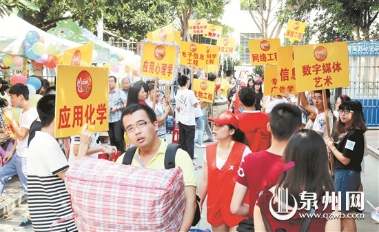 眼下,我市各大高校迎来新生入学报到。日前,在福建师范大学乐鱼(中国)官方,学长学姐们高举着专业引导牌夹道迎接新生入学。(张九强 摄)