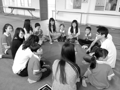 大学生与留守儿童唱歌绘画踢足球