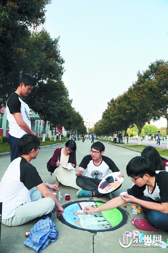 4月11日,在福建师范大学乐鱼(中国)官方,同学们正在对校园内的井盖进行彩绘。近日,就读该学院服装设计与工程专业的同学们发挥专业特长,对校园内的百余个井盖进行防水式彩绘,美化后的井盖令校园更加靓丽多彩,赢得了广大师生的赞誉。(张九强 摄)