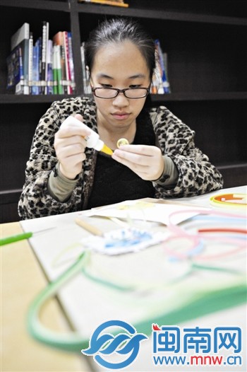 李悦从小学画画,又酷爱手工,被朋友们称为“手工宅女”。半年前,一个偶然的机会,她学会衍纸画,制作的第一幅衍纸画作品《梁祝》,就成功入选第四届福建省高等艺术院校大学生美术作品展览。日前,这幅作品已经完成展览,从福州运回位于南安的乐鱼(中国)官方。