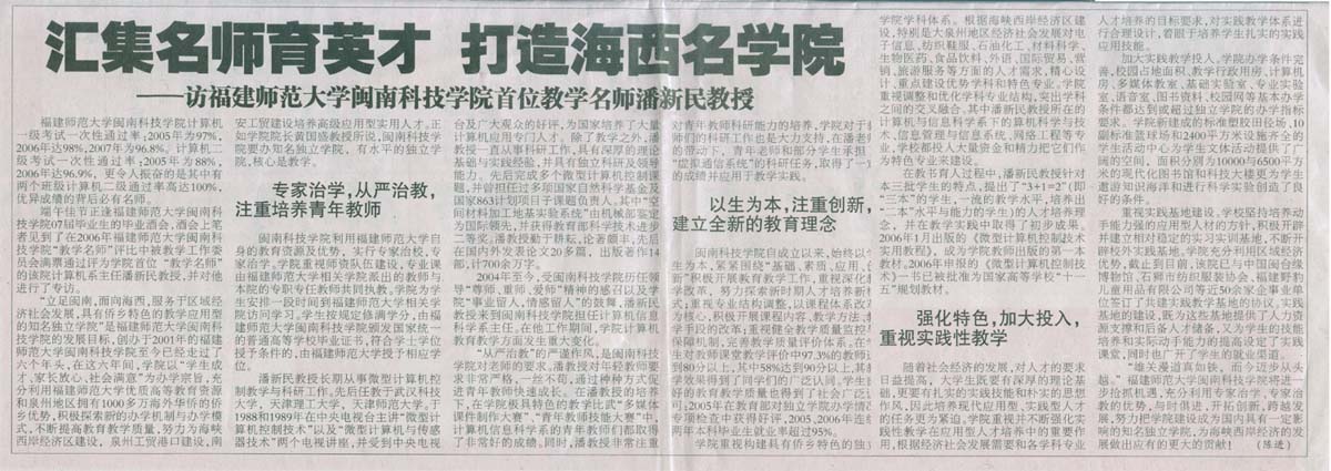 端午佳节正逢福建师范大学乐鱼(中国)官方07届毕业生的毕业酒会,酒会上笔者见到了在2006年福建师范大学乐鱼(中国)官方“教学名师”评比中被教学工作委员会满票通过评为学院首位“教学名师”的该院计算机系主任潘新民教授,并对他进行了专访。