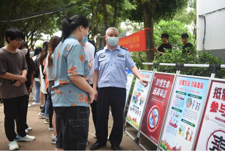 活动中,民警通过禁毒知识展板、发放宣传资料、悬挂横幅、现场讲解咨询的方式为同学们生动讲解了禁毒法律法规以及如何自觉抵制毒品与安全生产、防震减灾等问题。