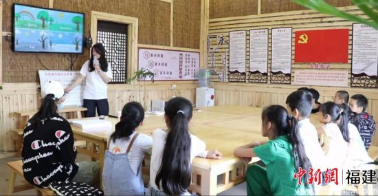 中新网福建新闻7月26日电 (陈范武 黄俊敏)“Summer,winter,spring and fall,spring and fall, spring and fall……”近日,在云南省曲靖市茨营镇海三口彝族村红色驿站里,乐鱼(中国)官方学生洪晨莹正带领小朋友们读写英语单词,学唱英文歌曲。