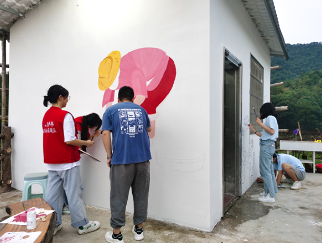 活动期间,实践队多次深入乡村调研考察,学习了解乡村振兴相关知识及顶楼村历史文化。充分了解当地文化后,实践队员们对墙绘内容及构图展开讨论与设计,推动村容村貌整体提升,为美丽乡村增添绚烂色彩。