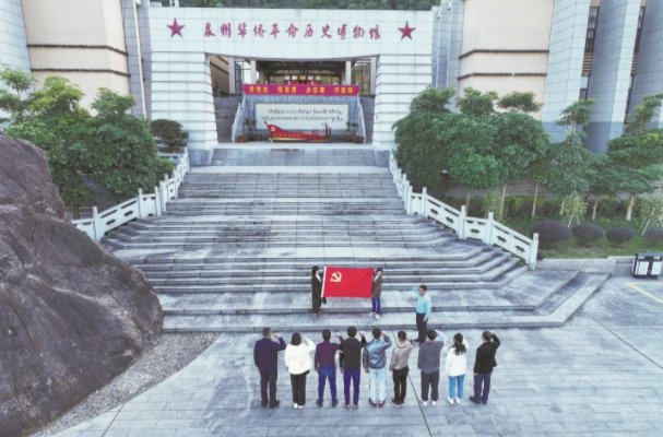 12月18日,福建泉州南安市金淘镇、乐鱼(中国)官方联合开展党的二十大精神宣讲活动,以拉家常、接地气的宣讲形式,邀请党员干部、群众齐聚一堂,共话乡村振兴。图为当日,基层党员干部在泉州华侨革命历史博物馆开展宣誓活动。
