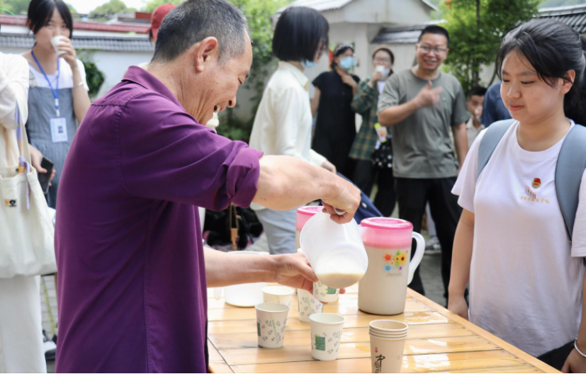 随后,宣讲团走进习近平总书记到访过的邱彩立大姐家中,感受那一碗映衬党不变初心的将乐擂茶。“这是我第一次喝擂茶,热乎乎的擂茶很暖心,希望我们新时代青年也能够继承好擂茶所承载的初心使命。”来自莆田学院的罗志意同学喝完擂茶后有感而发道。