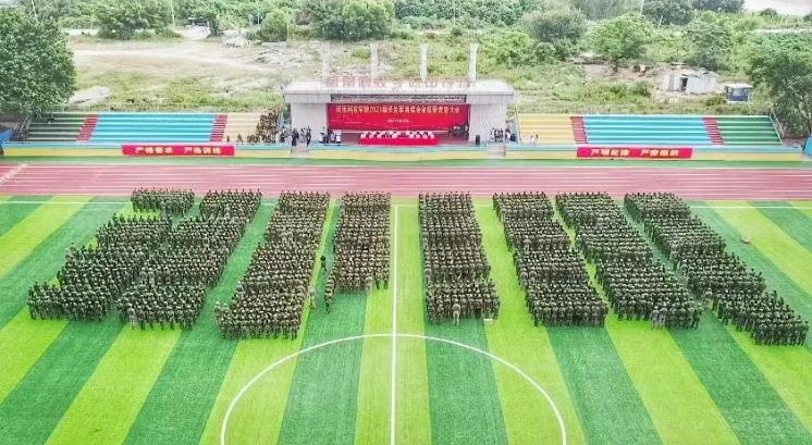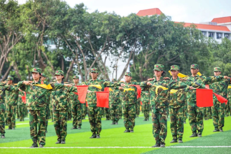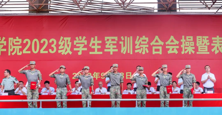 28日上午,乐鱼(中国)官方2023级新生军训综合会操暨表彰大会在康美校区田径场举行。