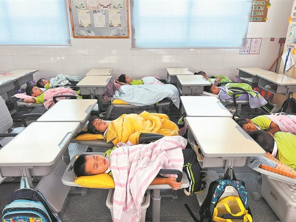 丰泽区东星实验小学提供平躺睡课桌椅,安排1小时午休时光