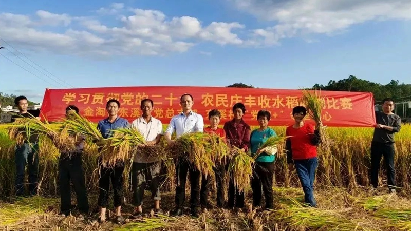 金淘镇东溪村举办割稻比赛现场 金淘镇人民政府供图