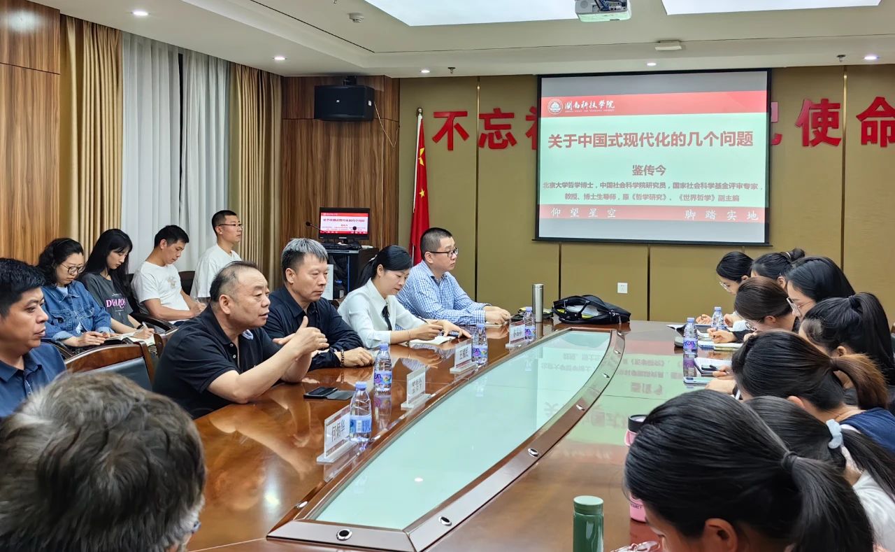 座谈会上,鉴传今研究员围绕“中国式现代化的内涵与特征”“中国式现代化的起源与领导力量”“中西现代化的差异”展开阐述,对中国式现代化重大原则和理论内涵进行深入解读辅导。他还对国家社科基金项目申请、期刊论文发表等师生关心的话题进行细致解答。