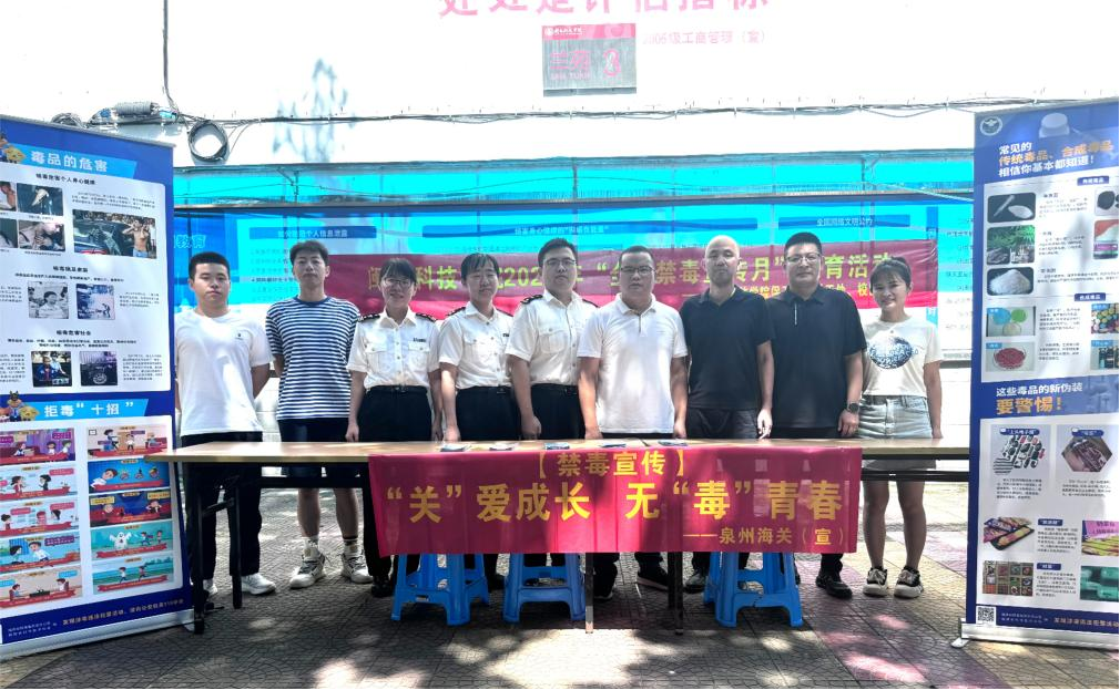 值此第37个“6·26”国际禁毒日之际,我校联合泉州海关开展禁毒宣传进校园活动。泉州海关关员,保卫处、学工处、校团委等职能部门负责人参加活动。