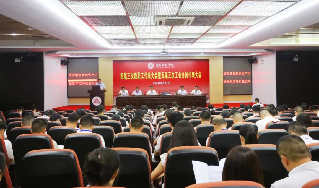 在第一次全体会议上,校常务副校长周勇军作题为《培育教育新质生产力,赋能学校高质量发展》的学校工作报告。报告对一学年来学校工作和取得的成绩进行总结,深入分析当前学校发展面临的新形势新任务和存在的困难问题,提出了当前及今后一段时期的主要工作思路、具体任务和明确要求,强调全体教职工必须准确把握前进方向,聚焦“办好人民满意的教育”的奋斗目标,奋力抓好党的建设、学科专业、教学改革、科研创新、人才队伍、内部治理等事关学校发展全局的主要工作,心往一处想、劲往一处使、拧成一股绳,全力以赴谋发展、抓发展、促发展,全面推进本科教学工作合格评估,奋力开创学校事业高质量发展新局面。