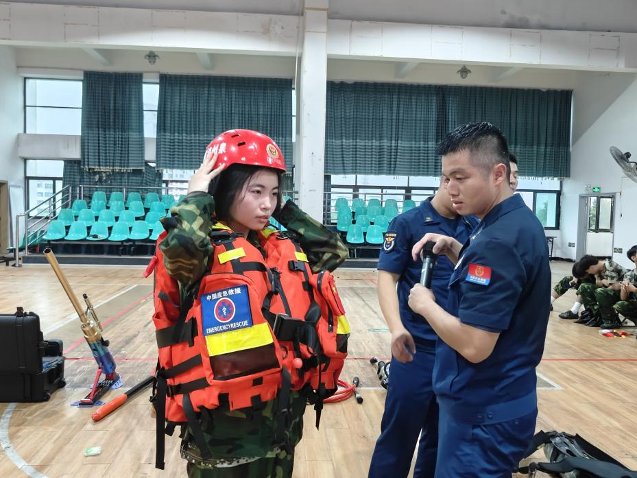 消防救援大队官兵们为新生们讲解消防器材装备