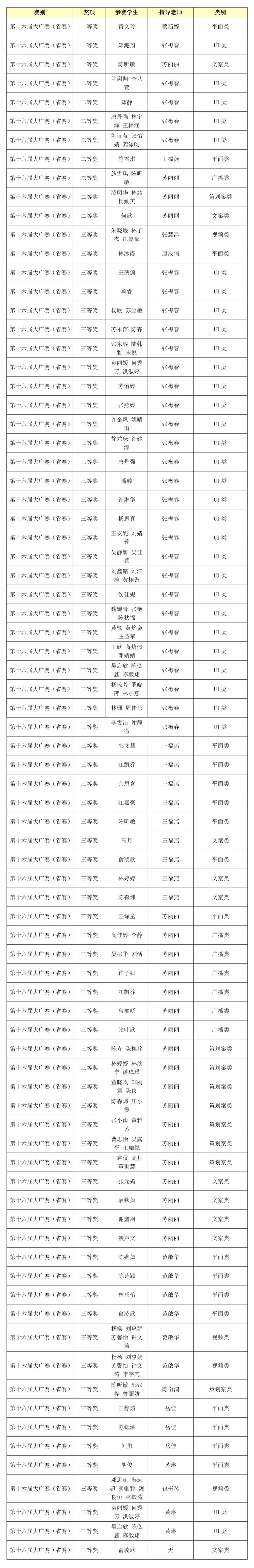 第十六届全国大学生广告艺术大赛福建赛区乐鱼(中国)官方获奖名单