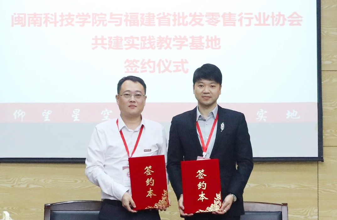 在签约仪式上,我校与福建省批发零售行业协会共建实践教学基地签约并授牌。