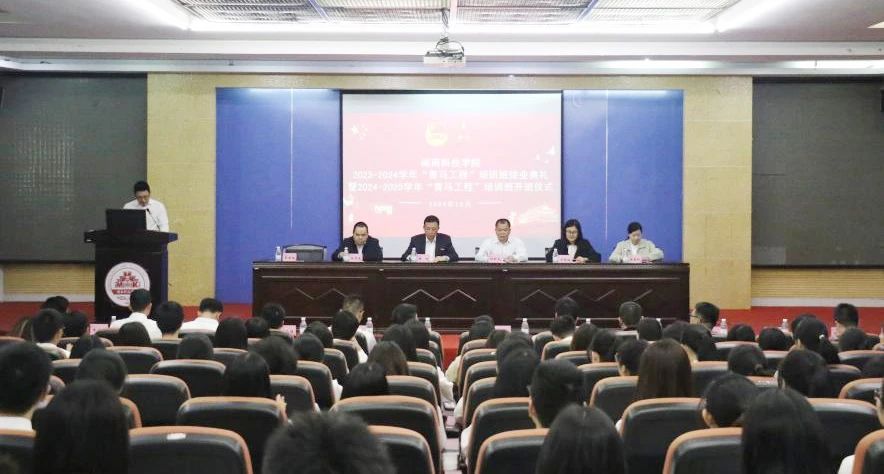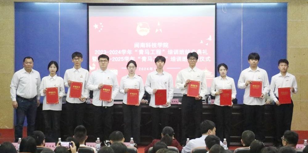 12月11日下午,我校举行2023-2024学年“青马工程”培训班结业典礼暨2024-2025学年“青马工程”培训班开班仪式。校领导李旭、林树生,宣传部、教师工作部、二级学院党组织负责人、马克思主义学院、校院专兼职团干部和“青马工程”培训班学员等参加开班仪式。