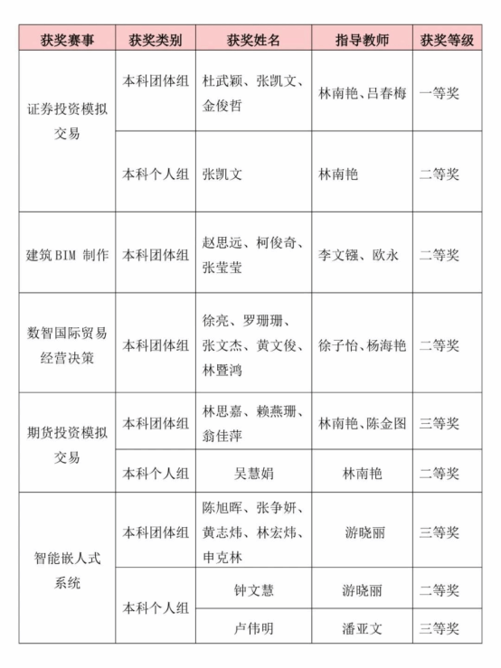 第十一届海峡两岸暨港澳大学生职业技能大赛乐鱼(中国)官方获奖名单