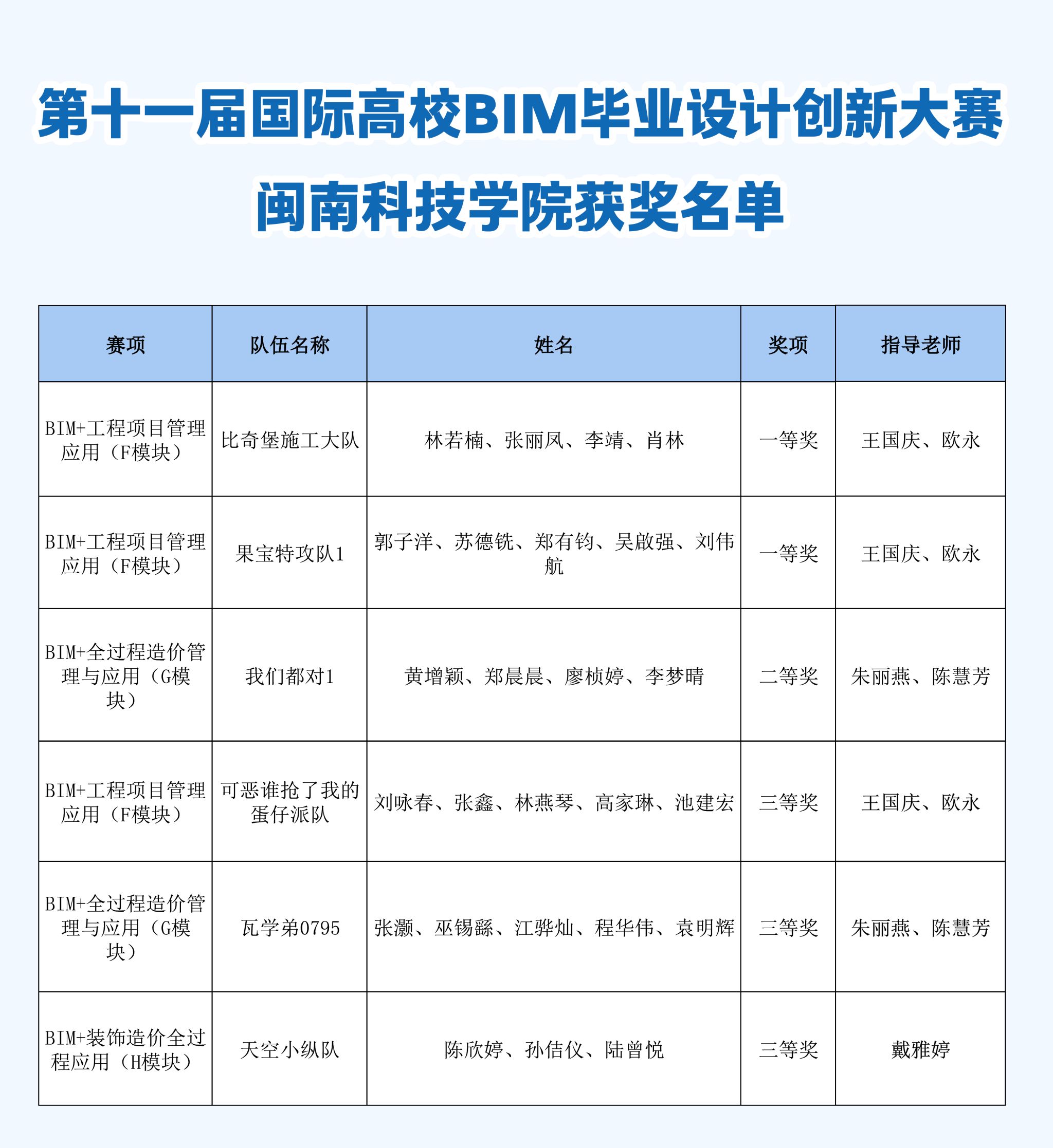 近日,第十一届国际高校BIM毕业设计创新大赛总决赛圆满结束,我校土木工程学院参赛队伍获得一等奖2项、二等奖1项、三等奖3项的好成绩。