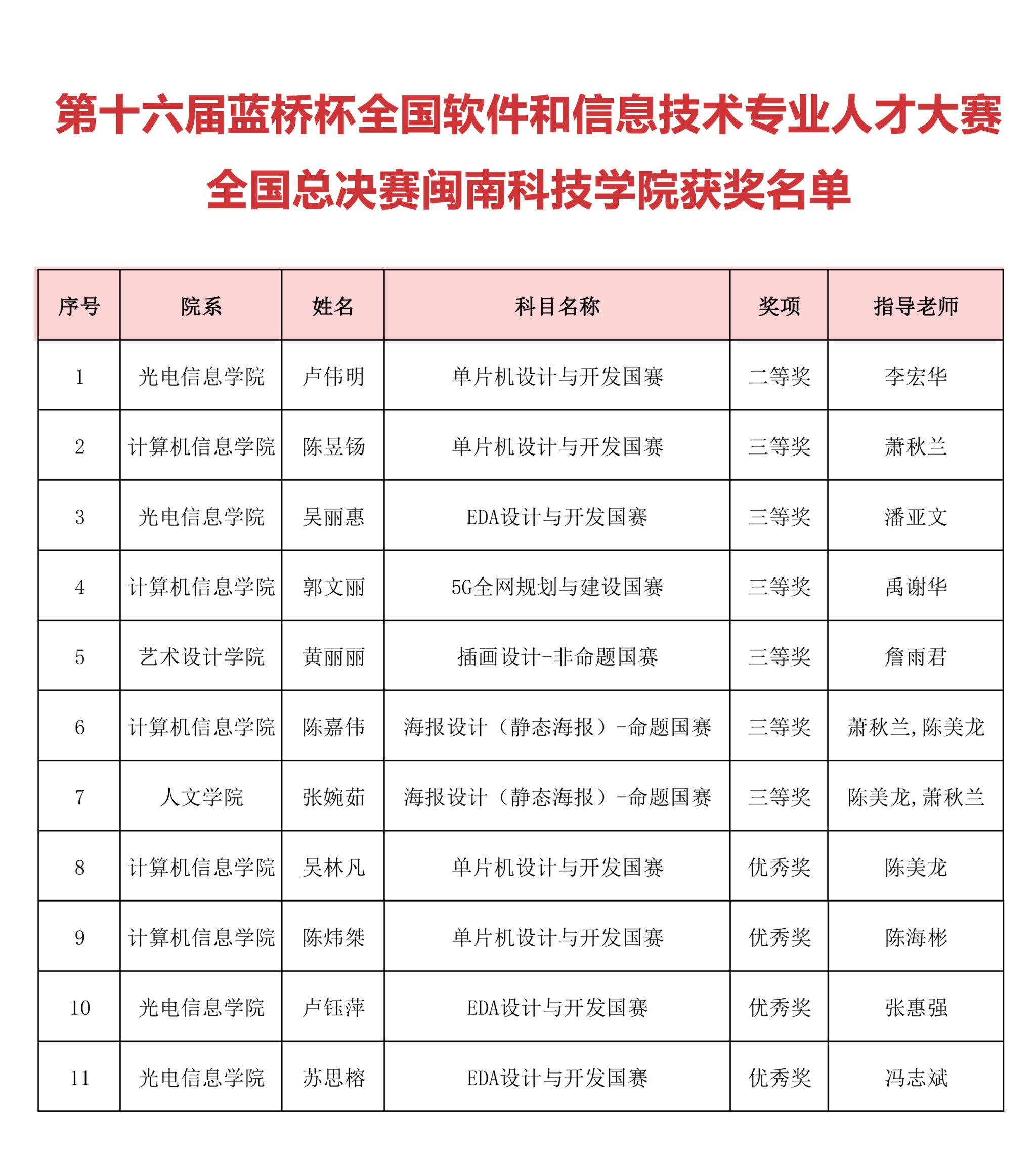 近日,第十六届蓝桥杯全国软件和信息技术专业人才大赛全国总决赛圆满落幕。我校参赛学子凭借扎实的专业功底与创新实践能力,共斩获二等奖1项、三等奖5项、优秀奖4项,获奖数量和质量均创新高。
