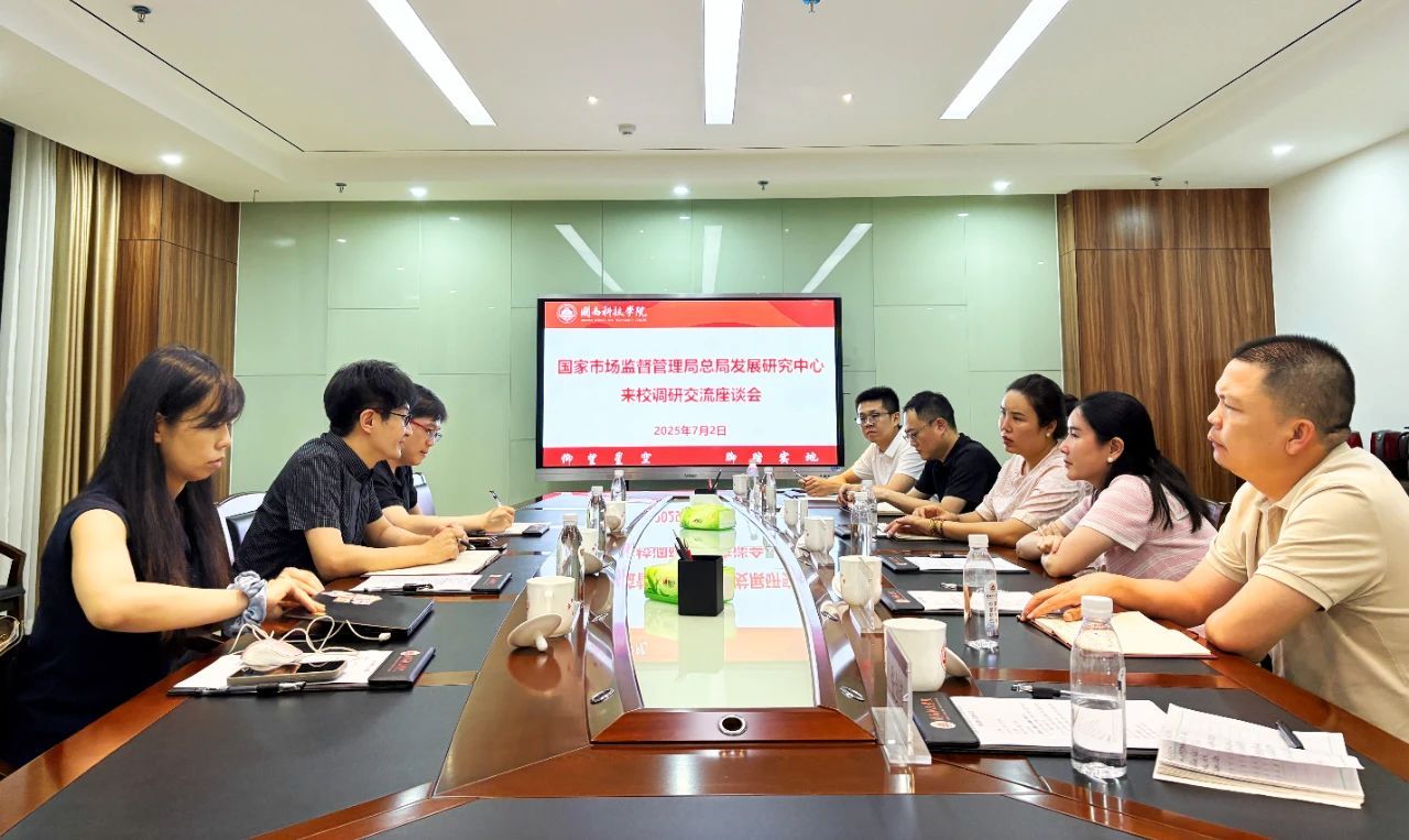 近日,国家市场监督管理总局发展研究中心创新和互联网监管研究部主任李桐、新零售和直播电商专委会副秘书长袁铮、助理研究员周萌等莅临我校调研交流。副校长岳瀚槭、校长助理王晓晓热情接待并召开座谈会。科研处、商学院、计算机信息学院负责人参加活动。
