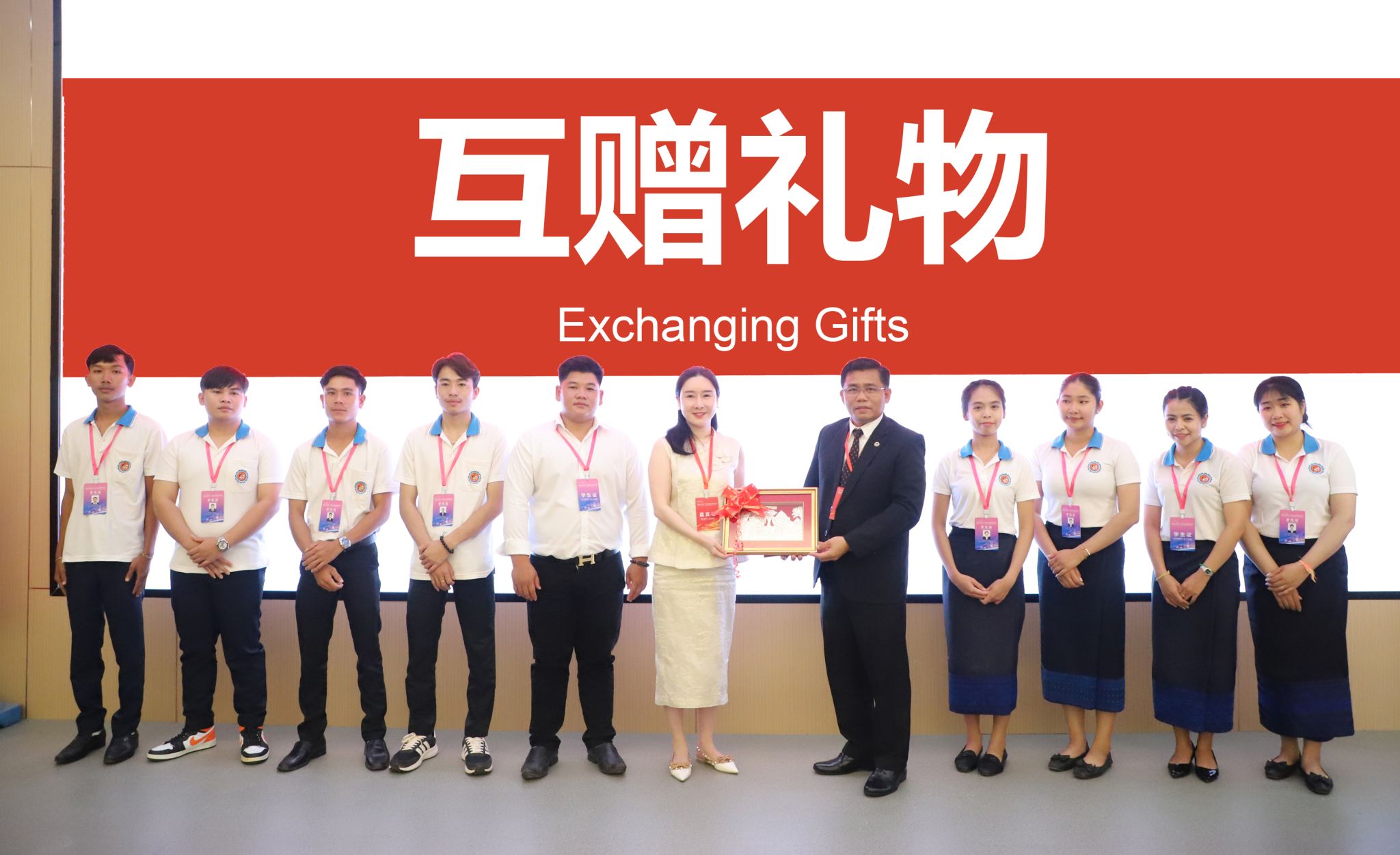 岳瀚槭副校长在致辞中代表学校董事会和全体师生,热烈欢迎参加研学的老挝师生朋友们。她表示,学校始终坚持“立足地方、服务区域、对接国际”的发展战略,致力于将中华优秀传统文化、现代职业技能与国际交流机制有机融合。本次研学项目正是这一理念的集中体现,也是我校积极响应国家“一带一路”倡议、拓展中老教育合作的生动实践。此次研学营学员们将在这里学习语言、体验技艺、结识朋友,打开一扇了解中国的窗口,种下一颗通向未来的种子,并期待学员们把所见、所感、所思带回老挝,成为连接中老友谊与文明的传播者。