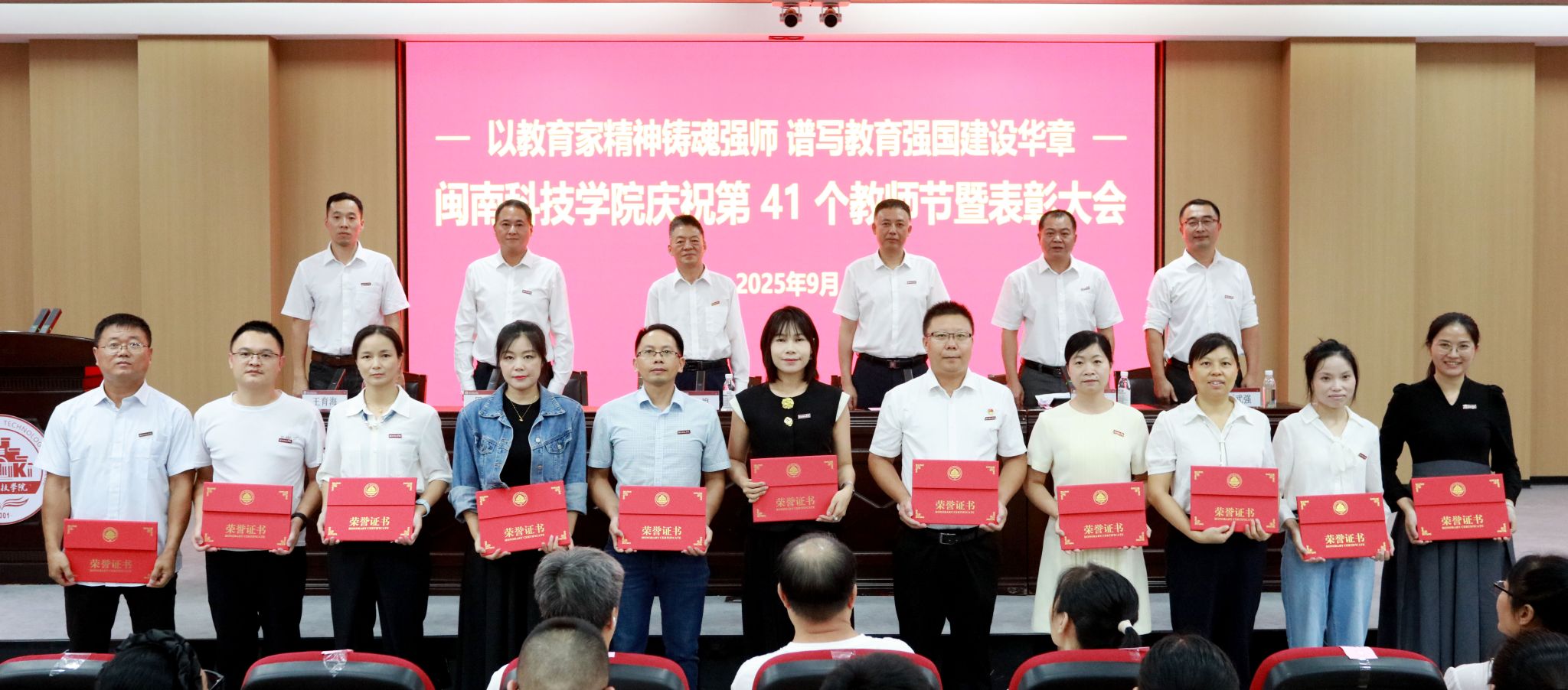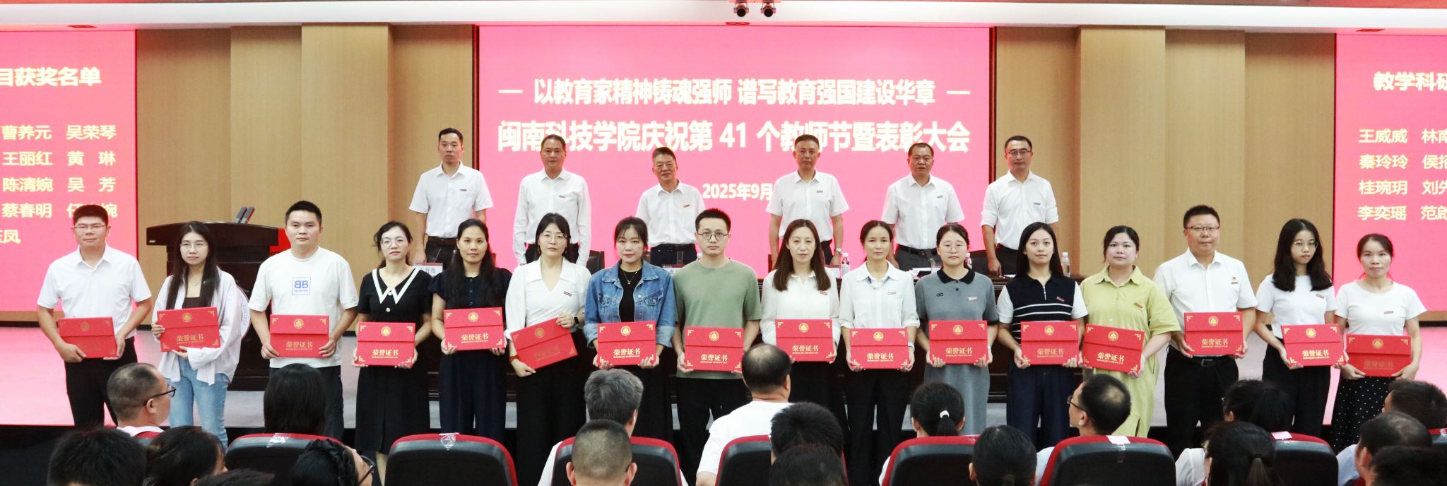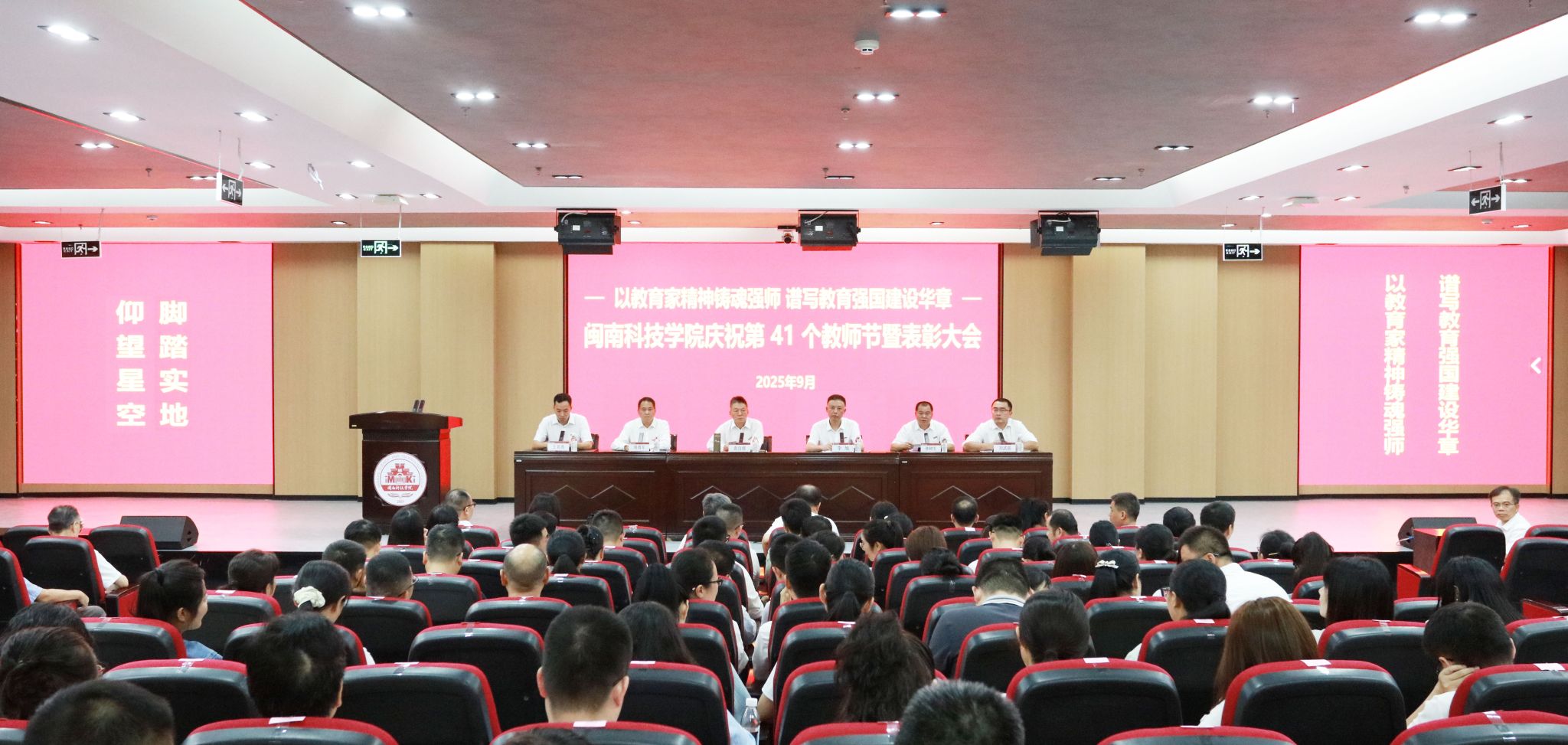 校党委书记李旭致辞,代表校党委和行政向辛勤耕耘在教育教学一线的全体教职员工致以节日的问候和崇高敬意!向受到表彰的先进集体和个人表示热烈的祝贺!他强调,在教育强国、教育强省建设的新征程中,广大教师要深入学习领会习近平总书记的重要回信精神,牢记嘱托、坚守初心,坚定信心、追求卓越,心怀大爱、乐教爱生,以昂扬奋进的精神状态不断谱写闽科发展新篇章。一要牢记嘱托、坚守初心。坚持以教育家精神为引领,坚守为党育人、为国育才初心使命,坚持不懈用习近平新时代中国特色社会主义思想铸魂育人,在不同岗位上奏响“立德树人”大合唱,培养一批又一批德智体美劳全面发展的社会主义建设者和接班人。二要坚定信心、追求卓越。以落实教育强省建设规划纲要,谋划学校事业发展“十五五”规划,迎接教育部本科教学工作合格评估为契机,牢记习近平总书记“福建没有理由不把教育办好”的殷切嘱托,坚持“仰望星空、脚踏实地”,把“论文写在田野大地上”,以教育之力厚植人民幸福之本,以教育之强夯实国家富强之基,为全面推进中华民族伟大复兴贡献闽科价值、闽科力量。三要心怀大爱,乐教爱生。要用真心、真情、真诚关爱每一位学生,严爱相济、润己泽人,做学生信赖的“良师益友”。牢记习近平总书记对教师队伍的殷切嘱托,既要有育人的知识和本领,更要有乐教的情怀和担当,以大爱践行学校“学生成才、家长放心、社会满意”的办学理念。