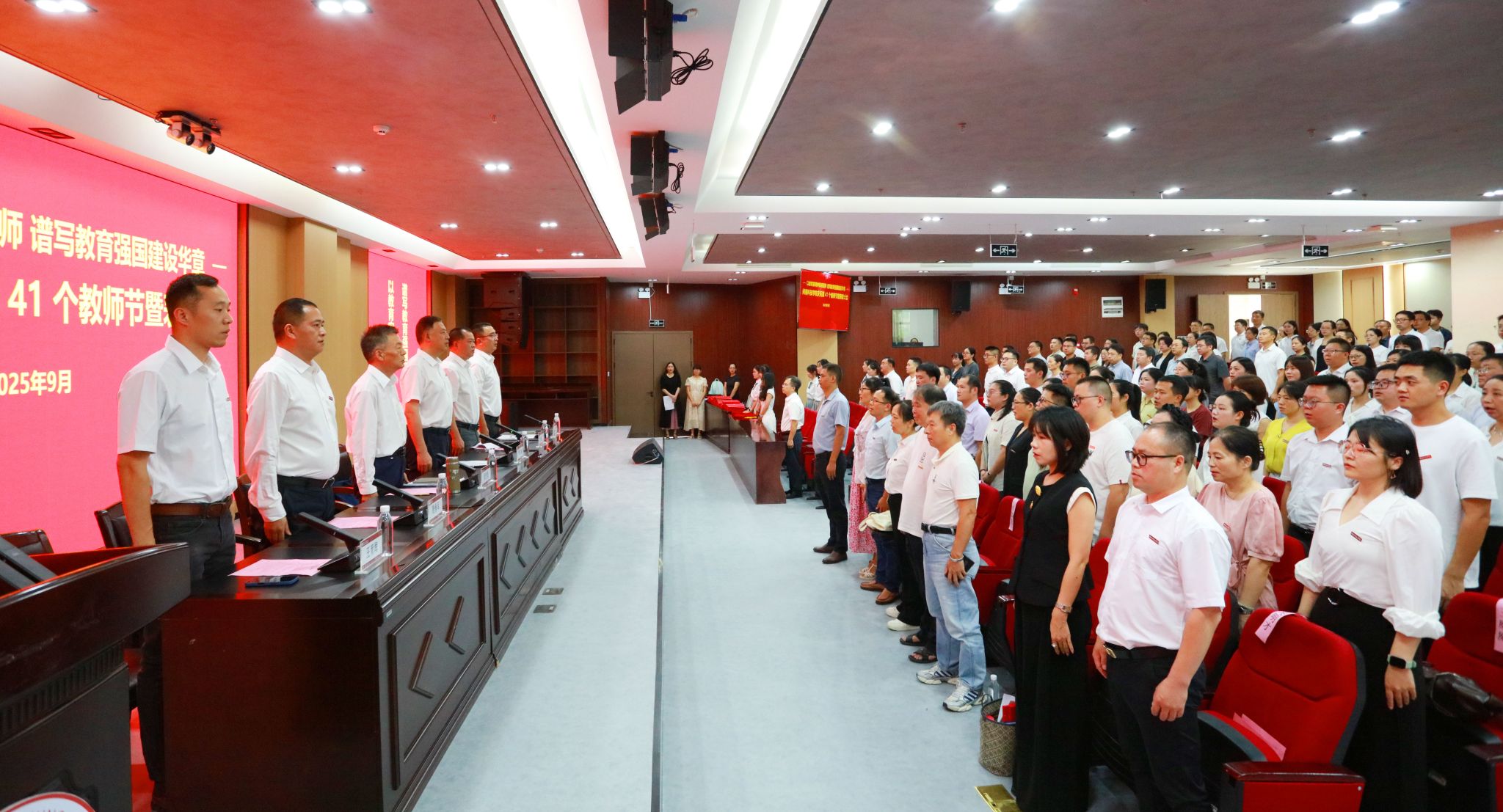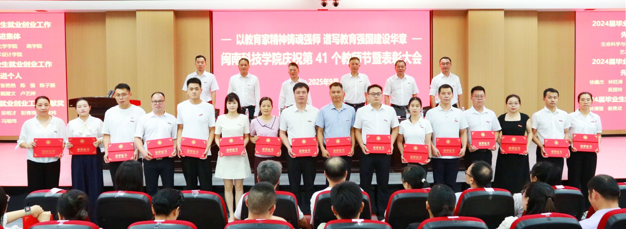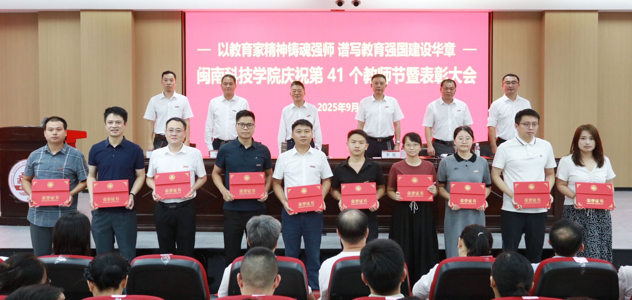 校党委书记李旭致辞,代表校党委和行政向辛勤耕耘在教育教学一线的全体教职员工致以节日的问候和崇高敬意!向受到表彰的先进集体和个人表示热烈的祝贺!他强调,在教育强国、教育强省建设的新征程中,广大教师要深入学习领会习近平总书记的重要回信精神,牢记嘱托、坚守初心,坚定信心、追求卓越,心怀大爱、乐教爱生,以昂扬奋进的精神状态不断谱写闽科发展新篇章。一要牢记嘱托、坚守初心。坚持以教育家精神为引领,坚守为党育人、为国育才初心使命,坚持不懈用习近平新时代中国特色社会主义思想铸魂育人,在不同岗位上奏响“立德树人”大合唱,培养一批又一批德智体美劳全面发展的社会主义建设者和接班人。二要坚定信心、追求卓越。以落实教育强省建设规划纲要,谋划学校事业发展“十五五”规划,迎接教育部本科教学工作合格评估为契机,牢记习近平总书记“福建没有理由不把教育办好”的殷切嘱托,坚持“仰望星空、脚踏实地”,把“论文写在田野大地上”,以教育之力厚植人民幸福之本,以教育之强夯实国家富强之基,为全面推进中华民族伟大复兴贡献闽科价值、闽科力量。三要心怀大爱,乐教爱生。要用真心、真情、真诚关爱每一位学生,严爱相济、润己泽人,做学生信赖的“良师益友”。牢记习近平总书记对教师队伍的殷切嘱托,既要有育人的知识和本领,更要有乐教的情怀和担当,以大爱践行学校“学生成才、家长放心、社会满意”的办学理念。