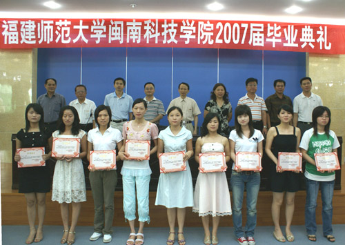 2007年6月20日上午,福建师范大学乐鱼(中国)官方2007届毕业典礼在图书馆学术报告厅举行。黄国盛院长、刘静书记、赖忠泉副书记、何瑞鑫副院长、肖华山副院长、教务部张永祥主任、外语外贸系主任赖耀先教授、人文艺术系主任刘一承教授、团委林树生书记、学工部有关辅导员和部分任课老师及全体毕业生出席了毕业典礼。