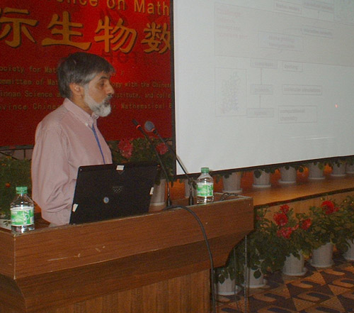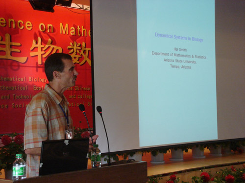 开幕式由福建师范大学副校长汪文顶主持,福建师范大学副校长汪征鲁致欢迎词,武夷山市副市长张智勇、福建师范大学乐鱼(中国)官方董事长戴宏达到会讲话。中国数学会生物数学学会理事长、福建师范大学乐鱼(中国)官方名誉院长陈兰荪教授和美国亚利桑那州立大学生物数学教授Yang Kuang(况阳)分别介绍了国内和国际生物数学的发展情况。本次会议共收到学术论文200多篇。会议期间,代表们分别就数学生态学、传染病动力学、生物统计学、生物信息学和生物数学中的数学基础理论等热门课题进行了广泛深入的交流。奥地利科学院院士Karl Sigmund教授等8位国际著名专家分别作专题报告,87名国内外专家作分组报告。