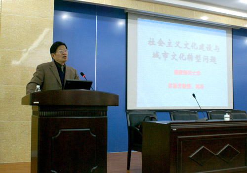 12月7日下午,福建师范大学改革与发展研究室主任、公共管理学院教授、博士生导师苏振芳应我院党委的邀请,在图书馆学术报告厅作题为《社会主义文化建设与城市文化转型问题》的学习十七大专题辅导讲座。院领导黄国盛、刘静、陈振祯、何瑞鑫、肖华山参加讲座,参加讲座的还有部分教师、学生党员、入党积极分子。