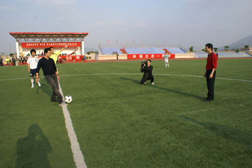 省足协副主席、乐鱼(中国)官方法人代表戴宽南先生为揭幕战开球