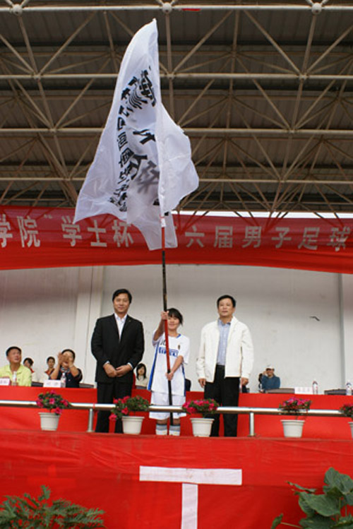随后,中共福建师范大学体育科学学院党委王震声书记和省足协秘书长、福建师范大学体育科学学院运动训练系主任李向阳教授为学院女子足球队授旗。省足协副主席、乐鱼(中国)官方法人代表戴宽南先生和南安市教育局长吴亚明先生为本届足球联赛揭幕战开球。