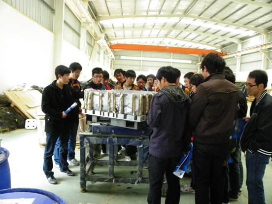 在参观过程中,工作人员首先向同学们介绍了公司概况及各项公司产品。然后工作人员带领同学们参观了多晶铸锭车间、单晶车间、检验室以及丝印镀膜车间的运作流程等,并且在参观其间,专业技术人员还就同学们提出的如“单晶和多晶制作的太阳能电池有什么不同;那么硬的硅是如何切成片的,已及一些车间内的仪器有什么用”等一些问题做出了详细的解答,让光信专业的同学们更加直观地了解从矿山开采,冶炼,精致提纯,以及晶体制作,切片,电池制作等一系列的生产工序。