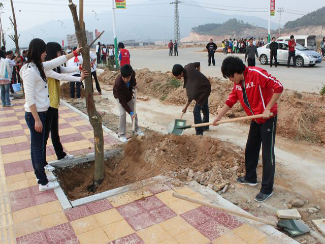 3月12日植树节来临之际,我院管理学系学生第一党支部全体党员、入党积极分子、青年志愿者协会和“欣源”环保协会的成员在张发秦教授的带领下来到南安体育用品基地,为我院管理学系学生第一党支部展开主题为“高举党旗树新风,绿化家园贺‘七一’”的党支部立项活动。