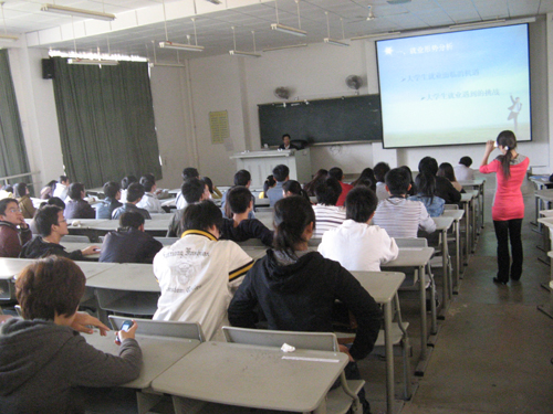 为进一步加强和促进大学生就业工作,郭伟老师于11月27日下午主动放弃休息时间前往福州大学城师大新校区,特为我院正在校本部访问学习的2007级学生举办了一场乐鱼(中国)官方应届毕业生就业辅导讲座。郭伟老师结合自身较丰富的社会实践工作经验,从大学生就业的形势、就业准备和劳动合同法解读等三个方面进行了分析阐述,并现场回答了同学们所关心的问题。历时二个半小时的讲座受到同学们的欢迎,收到了良好的效果。