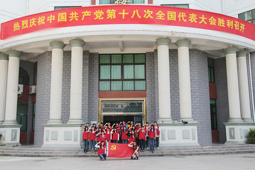 随着11月8日中国共产党第十八次全国代表大会的胜利召开,我院掀起了“走向十八大,献礼十八大”的学习风潮。近日,我院经济管理系学生第一党支部全体党员和入党积极分子在教学楼前以行为艺术的形式为十九大献礼。