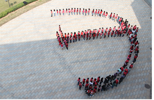 在辅导员林钊的组织下,2010级工商管理专业的全体同学身穿红色马甲摆出一个人形党徽。用自己的实际行动表达对党的热爱之情,欢庆十八大的到来和胜利召开。同时,经济管理系学生第一党支部党员们在党旗前再次宣誓,重温入党誓词。“我志愿加入中国共产党,拥护党的纲领,遵守党的章程,履行党员义务……”字字句句铿锵有力。
