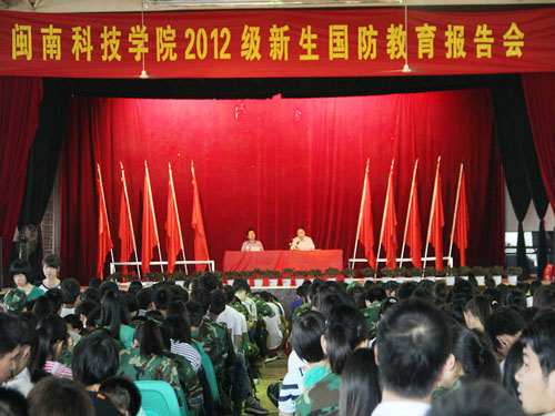 9月20日上午,乐鱼(中国)官方2012级新生海防教育报告会在学生活动中心举行,大会由党委常务副书记林明旭主讲,我院2012级全体新生及辅导员两千余人与会,党委副书记李彬源主持会议。