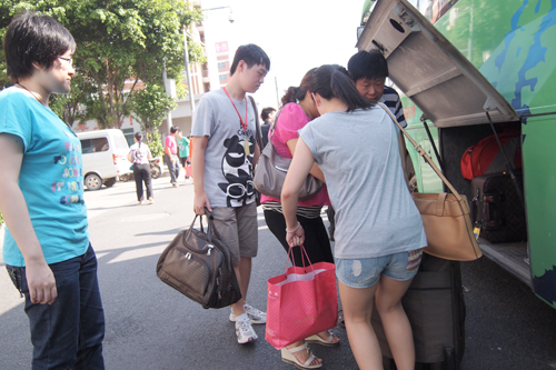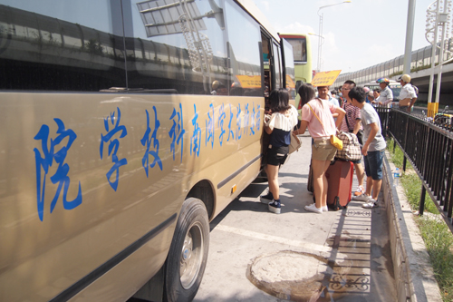一位来自城市管理学专业的女同学跟着父亲走下长途大巴时一脸憔悴,我们的志愿者连忙招呼他们到“大本营”坐下,并递上饮用水。几分钟后,她紧绷的脸才渐渐舒展开来。“这是我们第一次出远门,还晕车,一路提心吊胆的,现在总算放心了。”女同学的话让志愿者们脸上泛起开心的笑容。
