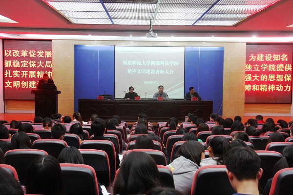 会上,院党委常务副书记林明旭作重要讲话。他指出,过去的两年,院党委在福建师大党委的正确领导下,紧紧围绕学院中心工作、以改革促发展,抓稳定保大局,制定出台了《中共福建师范大学乐鱼(中国)官方委员会关于进一步加强精神文明建设工作的意见》和《福建师范大学乐鱼(中国)官方精神文明建设评选管理办法(试行)》,扎实开展精神文明创建活动,取得了明显成效。一是围绕健全制度,扎实推进思想理论建设,社会主义核心价值观深入人心;二是围绕文化建设,深化创建活动,校园文明程度持续提升;三是围绕服务社会功能,加强文明共建,推动精神文明建设成果的对外辐射。林明旭强调,精神文明建设工作要常抓不懈,要继续围绕学院的工作中心,从形象建设到内涵建设,从制度建设到自觉实践,不断提升精神文明的总体水平和质量,全力推进学院各项工作再上新台阶。一要促进改革,不断完善学院精神文明创建的长效机制;二要加强宣传,着力打造学院精神文明创建的特色和品牌;三要深化成果,构建社会主义核心价值观传播体系,不断开创学院精神文明建设新局面,为建设知名独立学院提供强大的思想保障和精神动力。