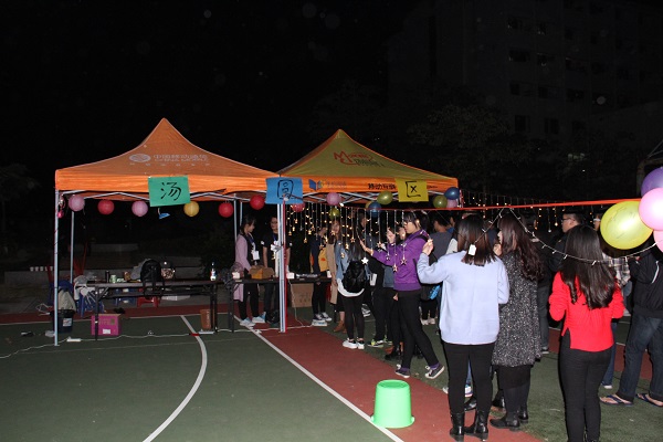 活动包括硬币游泳大赛、倒着说、幸运背背背、拖鞋投桶、浑水夹弹珠等小游戏,吸引了大量师生前来参与。活动现场可以通过玩游戏的方式领取汤圆券,也可以通过微博互动,抽取汤圆券,现场一片欢声笑语,充满了浓郁的节日气氛。活动还设置了爱心墙,师生同台表演节目,共度一个温暖有情的冬至夜。