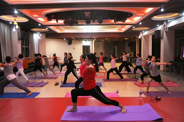 女教职工进行瑜伽形体训练