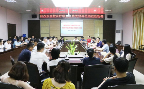 9月4日上午,福建省教育厅学生工作处处长谢友平、福州外语外贸学院党委副书记季祖强来我院调研创新创业教育工作。院领导张杰、林明旭、周勇军、吴勇、俞建群陪同调研。