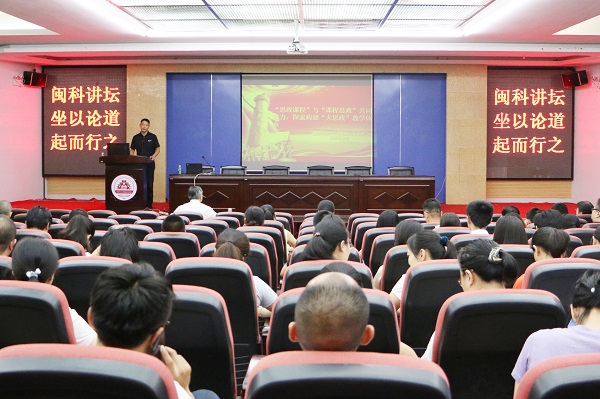 报告会上,邓翠华教授从思政课程与课程思政、构建“大思政”教学体系的必要性、构建“大思政”教学体系的路径等三个方面,对“大思政”教学体系进行了分析和解读。她强调,我们要认真学习习近平总书记在全国高校思想政治工作会议上的重要讲话,利用课堂教学主渠道,使各类课程与思想政治理论课同向同行,形成协同效应。要构建“思想政治理论课、综合素养课程、专业课程”三位一体的高校大思政课程体系,把培育和践行社会主义核心价值观全面渗透到学院教育教学全过程。